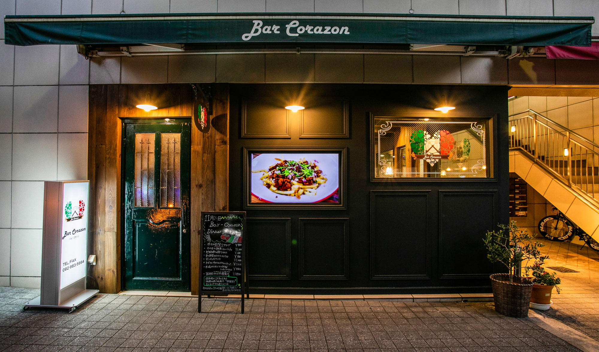 その中央に位置する唐人町商店街の西の端に、「バル・コラソン (Bar Corazon)」はあります。